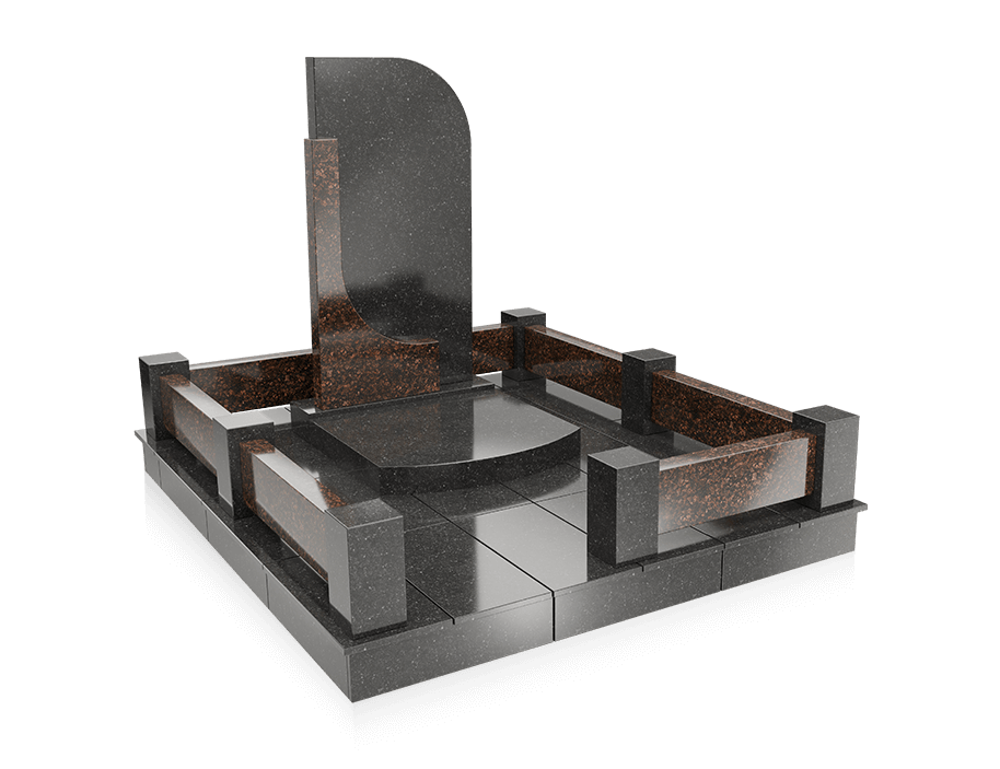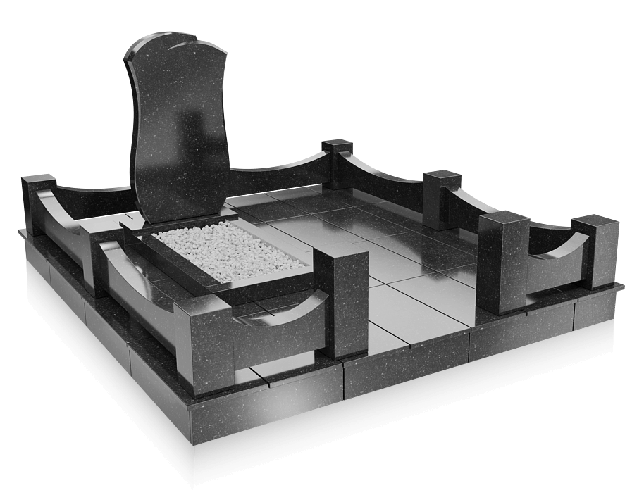 Памятник ДМ8.1 с фигурной оградой и мощением плиткой из гранита