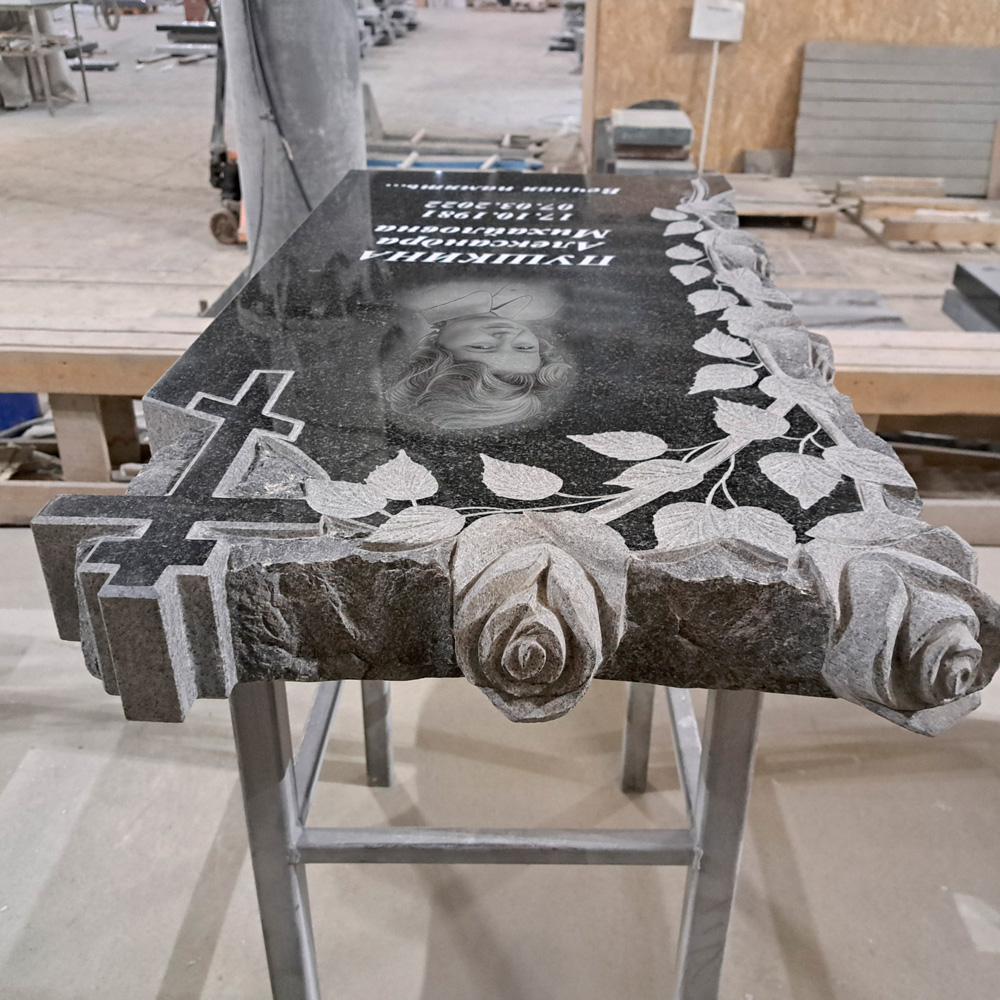 Памятник ручной работы с орнаментом из роз